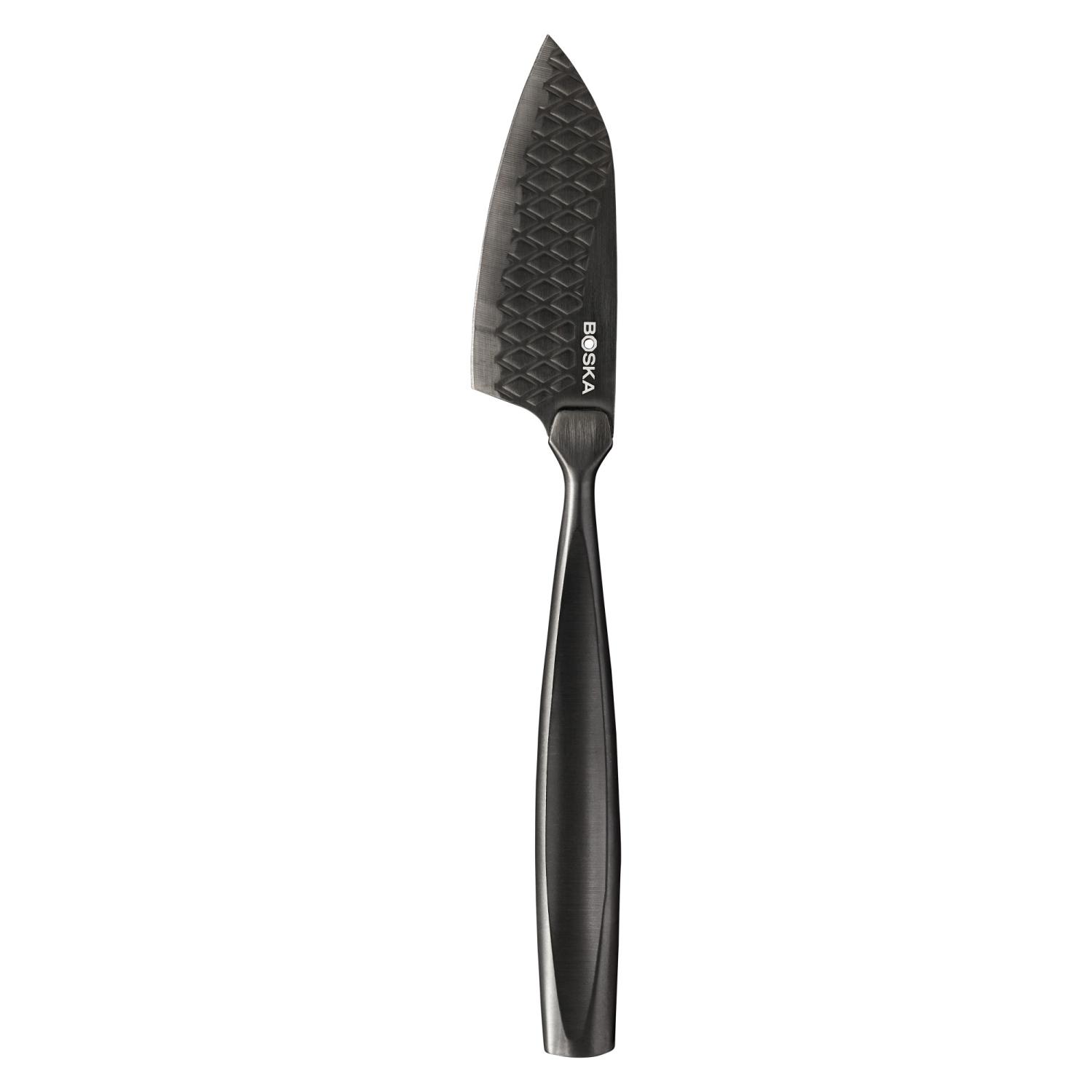 The Boska Cheese Knife Set Monaco+ Dark is designed for those who appreciate exceptional craftsmanship and presentation. This three-piece set includes knives for soft, semi-hard, and hard cheeses-each crafted from stainless steel with a titanium non-stick coating for smooth slicing. Finished in sleek black and paired with a brown leather storage case, it’s a timeless, high-quality gift for cheese lovers and entertainers alike. Complies with CPSIA, Prop 65. 2.68″ W x 0.24″ H x 10.24″ L