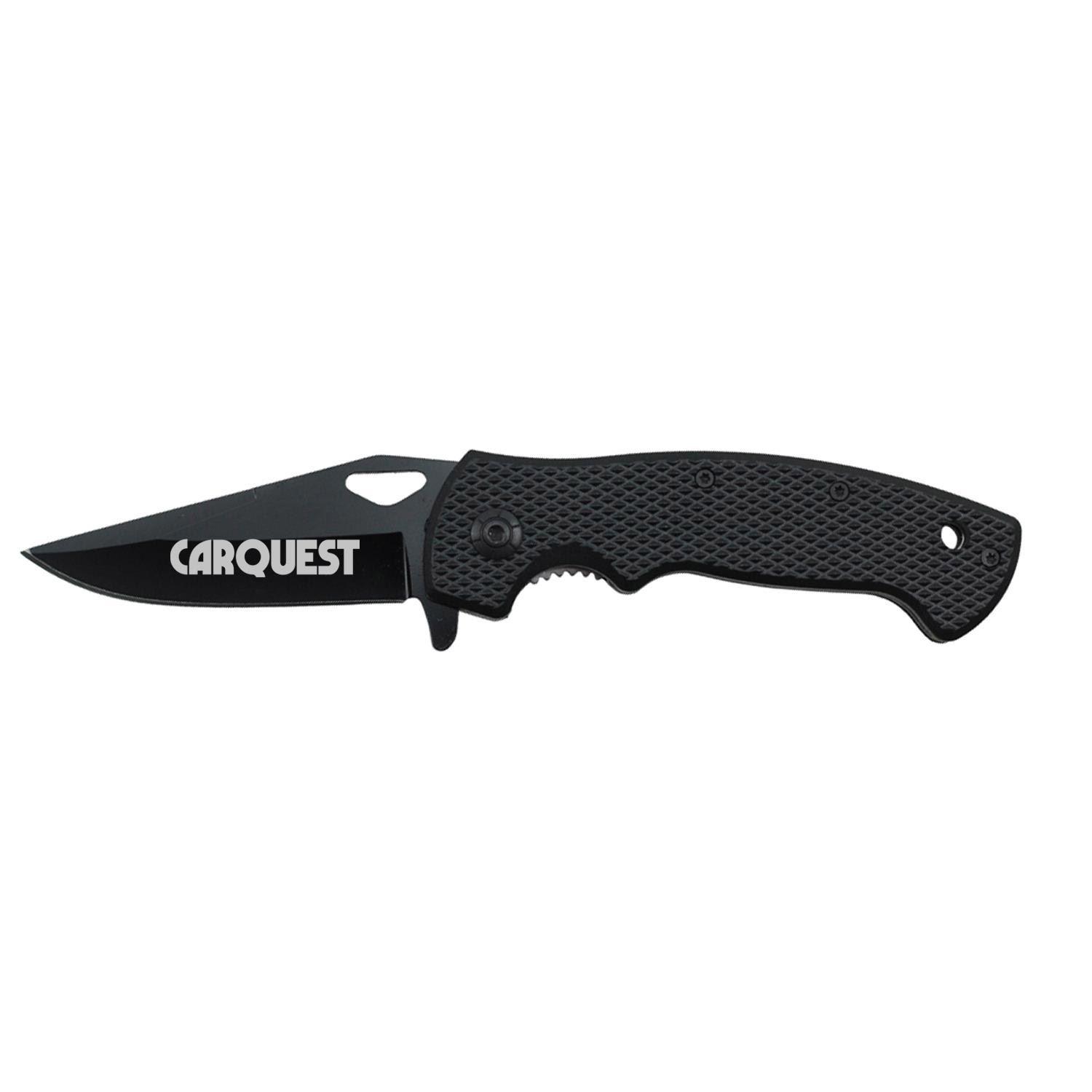 The Cedar Creek Black Flash Pocket Knife has a tactical and sleek look. 4.5″ ABS black textured handle for an easy grip. 3.5″ black stainless steel drop point blade with assisted opener. Comes with clip. Laser engraved on blade. Boxed. Complies with Prop 65.