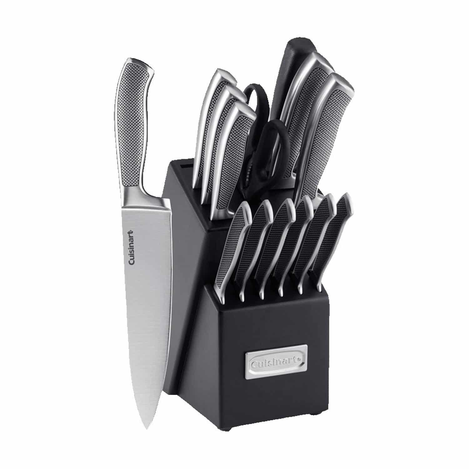 The Graphix Collection 15 Piece Cutlery Block Set turns heads with its textured handles for easy grip, sharp fine blades, and effortless efficiency. Set Includes: 8″ Chef Knife, 8″ Slicing Knife, 7″ Santoku Knife, 5.5″ Serrated Utility Knife, 3.5″ Paring Knife, 2.75″ Bird’s Beak Paring Knife, 4.5″ Steak Knives (6), 8″ Sharpening Steel, All-Purpose Household Shears, Block