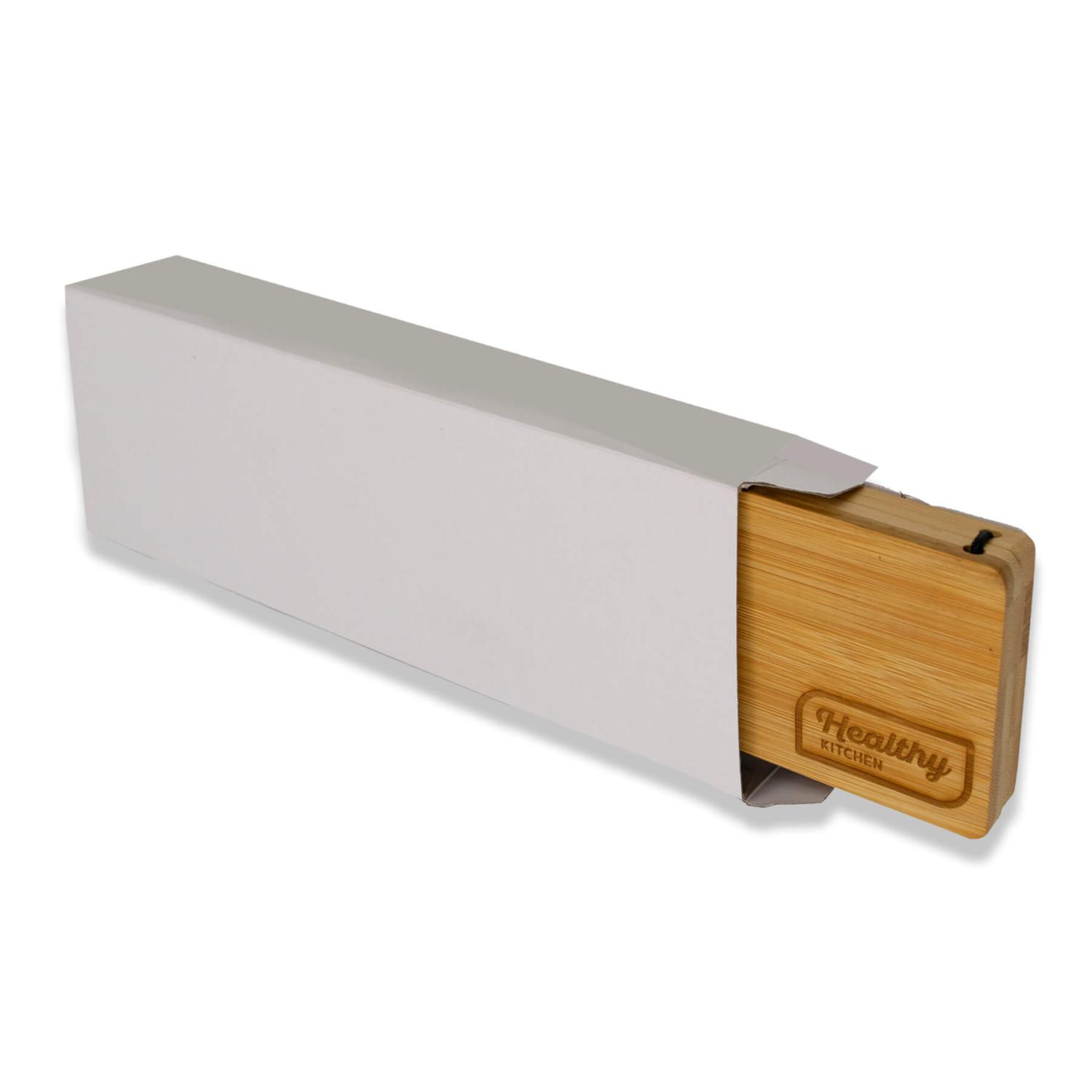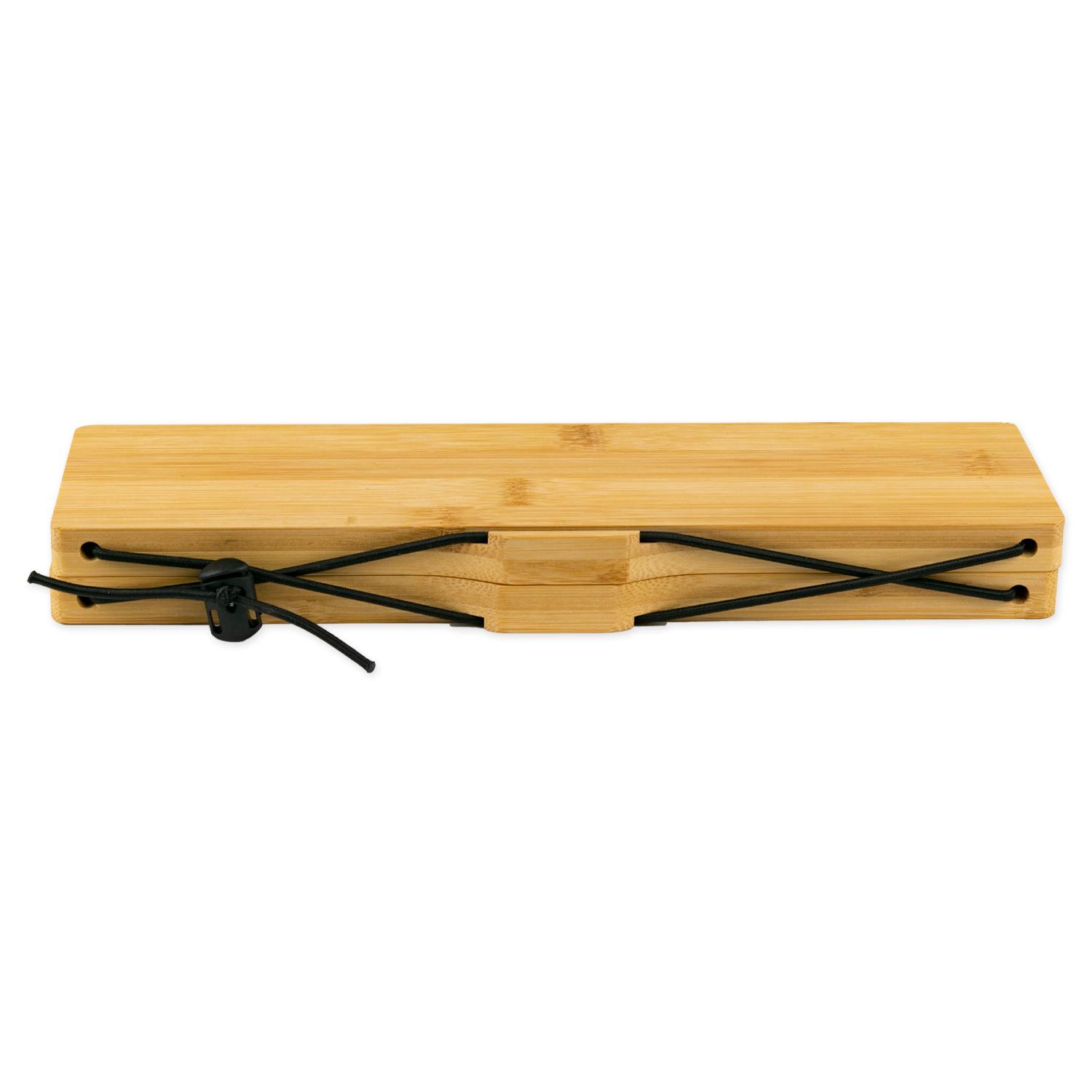 Great for Housewarming gifts, gift shops, culinary-related events and more! This set comes with two knives and a cord closure for a secure close when traveling or storing. The Portable Cutlery Set box is a foldable bamboo cutting board crafted from renewable bamboo. It’s perfect size is great for kitchens with limited counter space. We recommend washing any/all items which may come into contact with food or be used for food preparation prior to use. Imported. Because of naturally occurring variations in the grain and color of bamboo, this product may vary in appearance. Complies with Prop 65. 3.63″ H x 11.42″ W x 1.18″ D