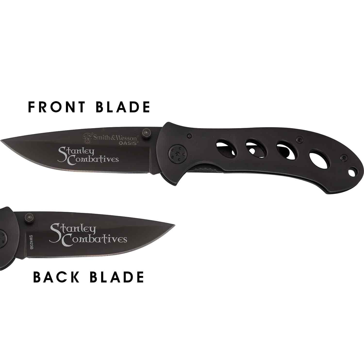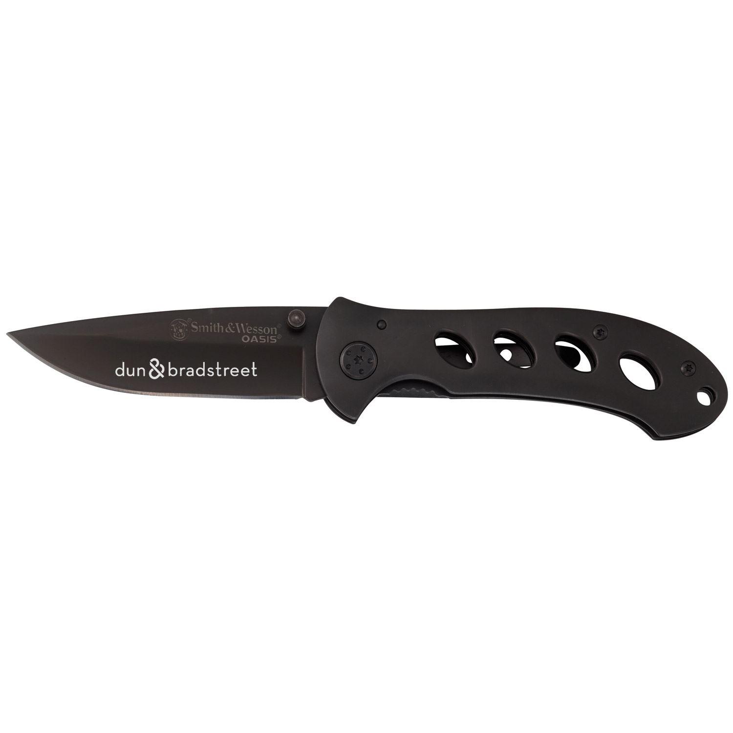 4″ closed. 3″ blade. Handle is made of titanium coated stainless steel. Blade is titanium coated high carbon stainless steel. Liner lock. Comes with pocket clip. Boxed. Complies with Prop 65.