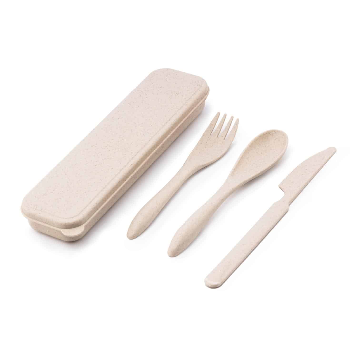 Eco-friendly marketing made with renewable wheat straw plastic. Includes: Knife, Fork and Spoon with travel case. On-the-go cutlery is perfect for traveling, camping, picnics, school lunch, office and outdoor gatherings. Reusable and reduces waste from single-use plastic ware. Top rack dishwasher safe. Do not use in microwave. 1% of proceeds of this item is donated to Water.org, a nonprofit organization that has transformed millions of lives around the world with access to safe water and sanitation. Product Dimensions -??Case: 8x2x1,?Spoon: 6.29×1.18,?Knife:?7.32×0.71,?Fork: 5.98×1.02. Complies with ASTM, CPSIA, C-TPAT, FDA. 8″ L x 2″ W